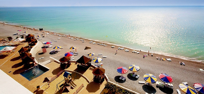 Пляж представляет собой галечную полосу протяженностью 150 метров. Здесь созданы все условия: